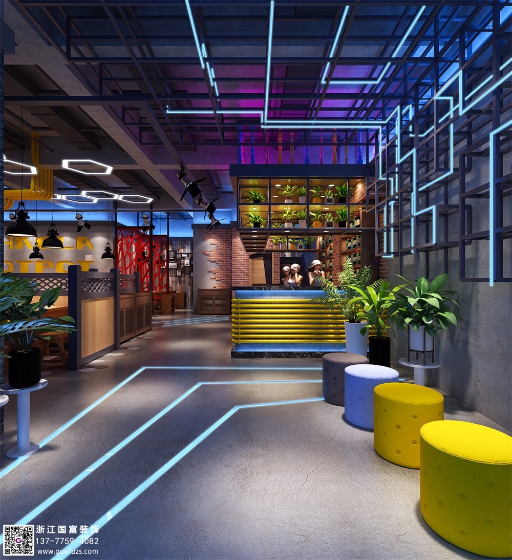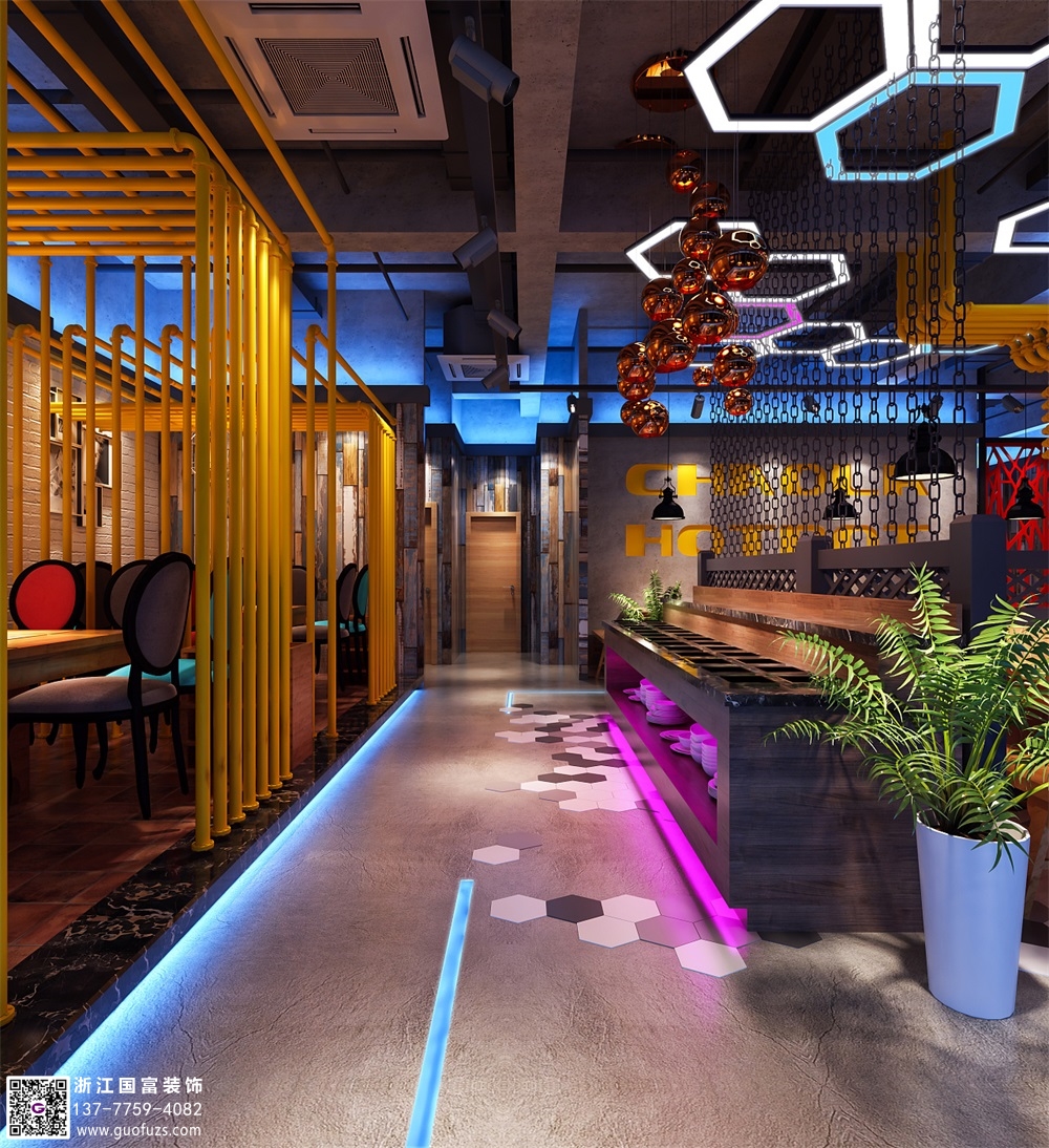 潮辣火鍋店裝修設(shè)計案例效果圖