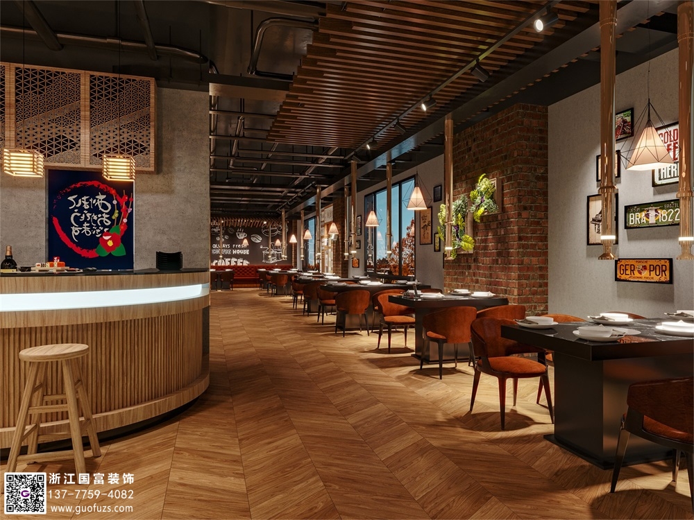 紅磚水泥工業(yè)風(fēng)烤肉店設(shè)計(jì)效果圖